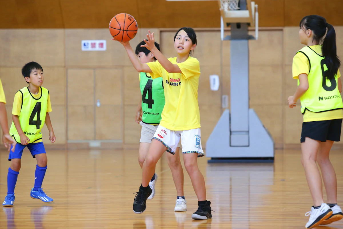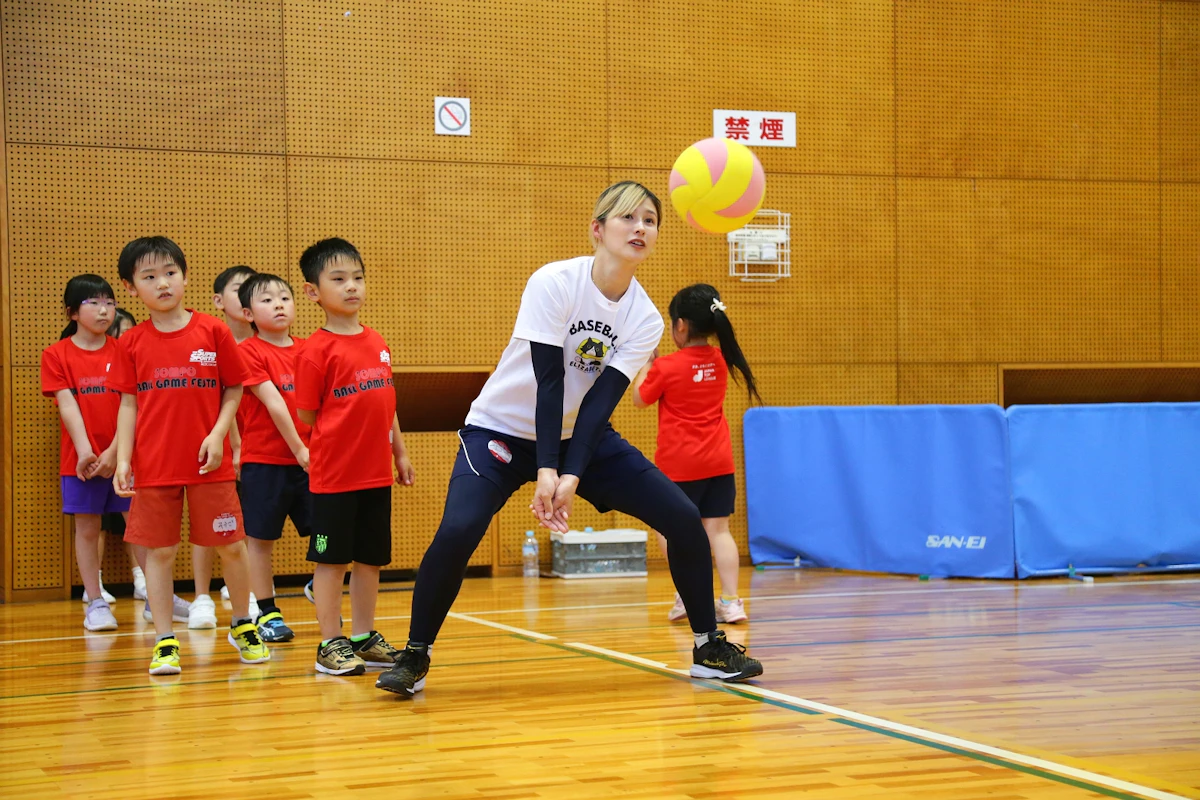 スペシャルゲストとして元女子プロ野球選手の加藤優さんが参加され、遊びを通して運動の基礎を作るプログラムと4競技を体験しました。