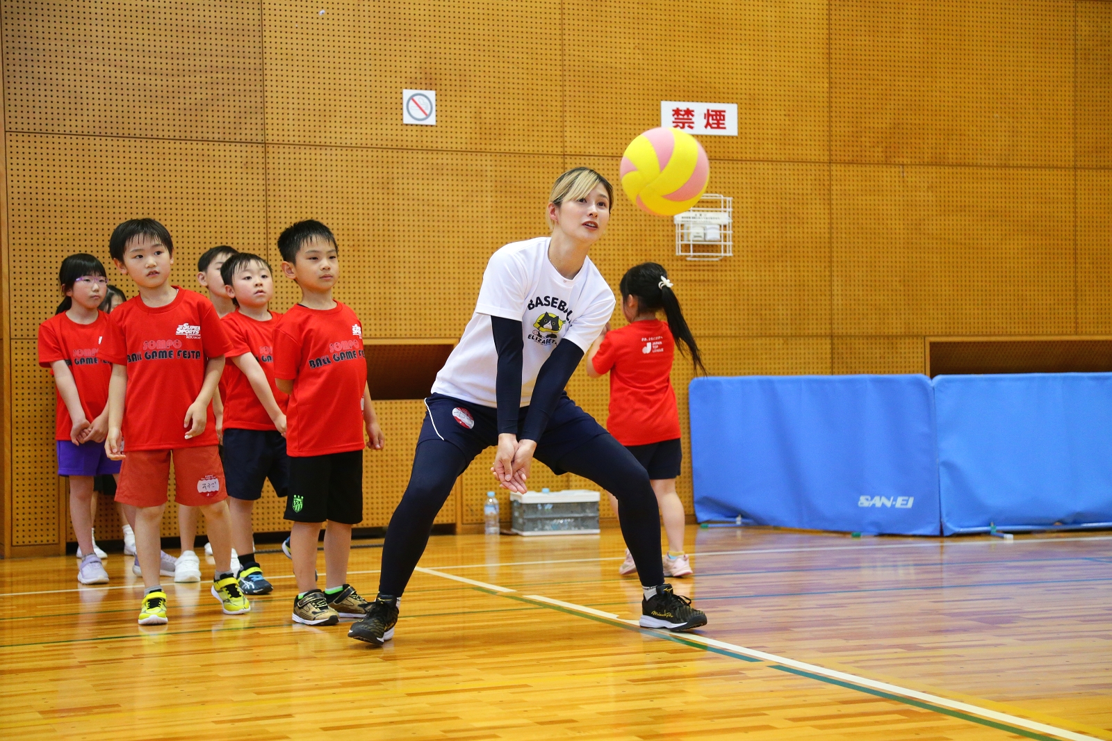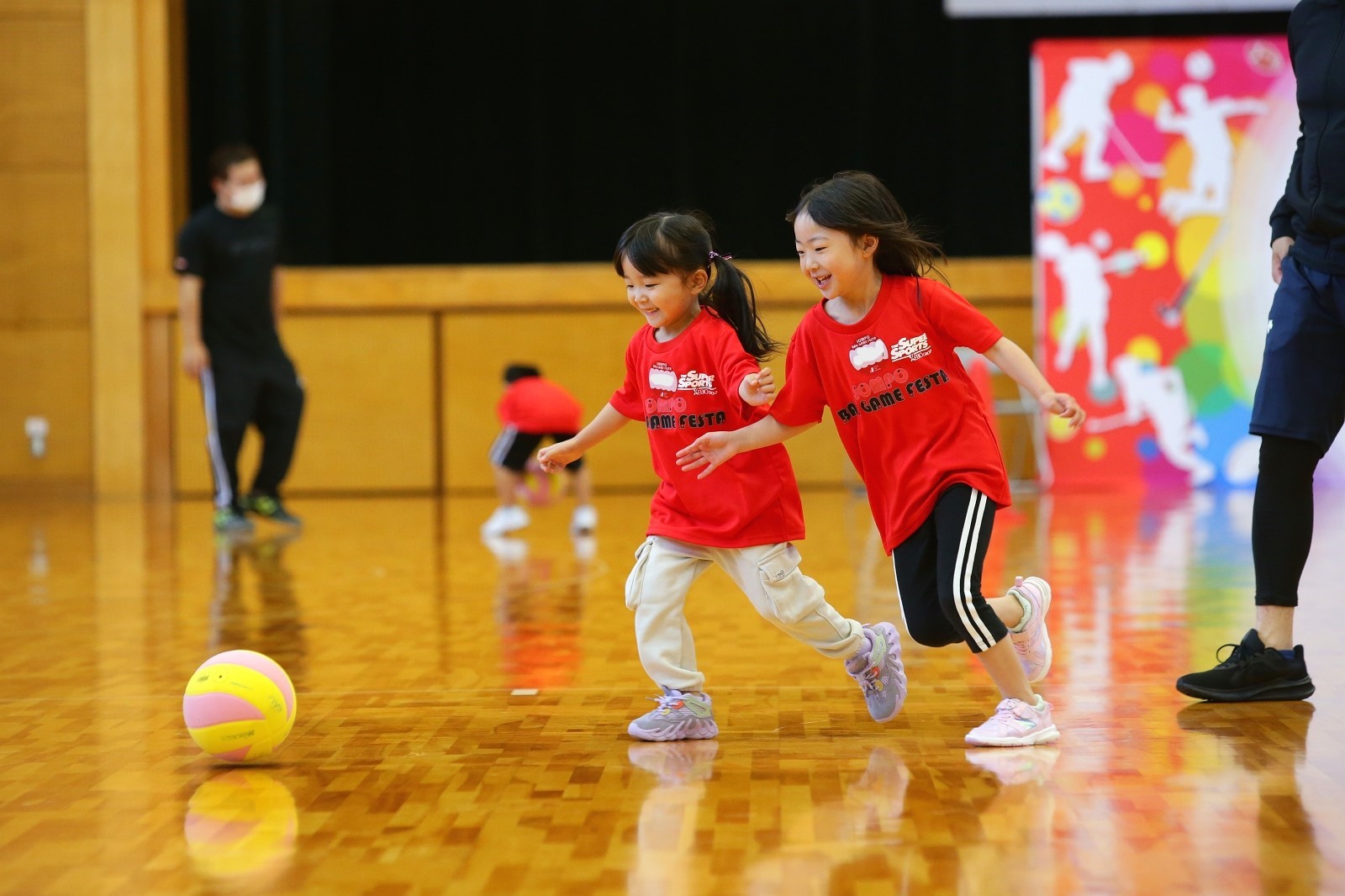 午後の「キッズチャレンジ」には91名の子どもたちが参加し、バレーボール、バスケットボール、サッカー、ソフトボールの4種目にチャレンジしました。