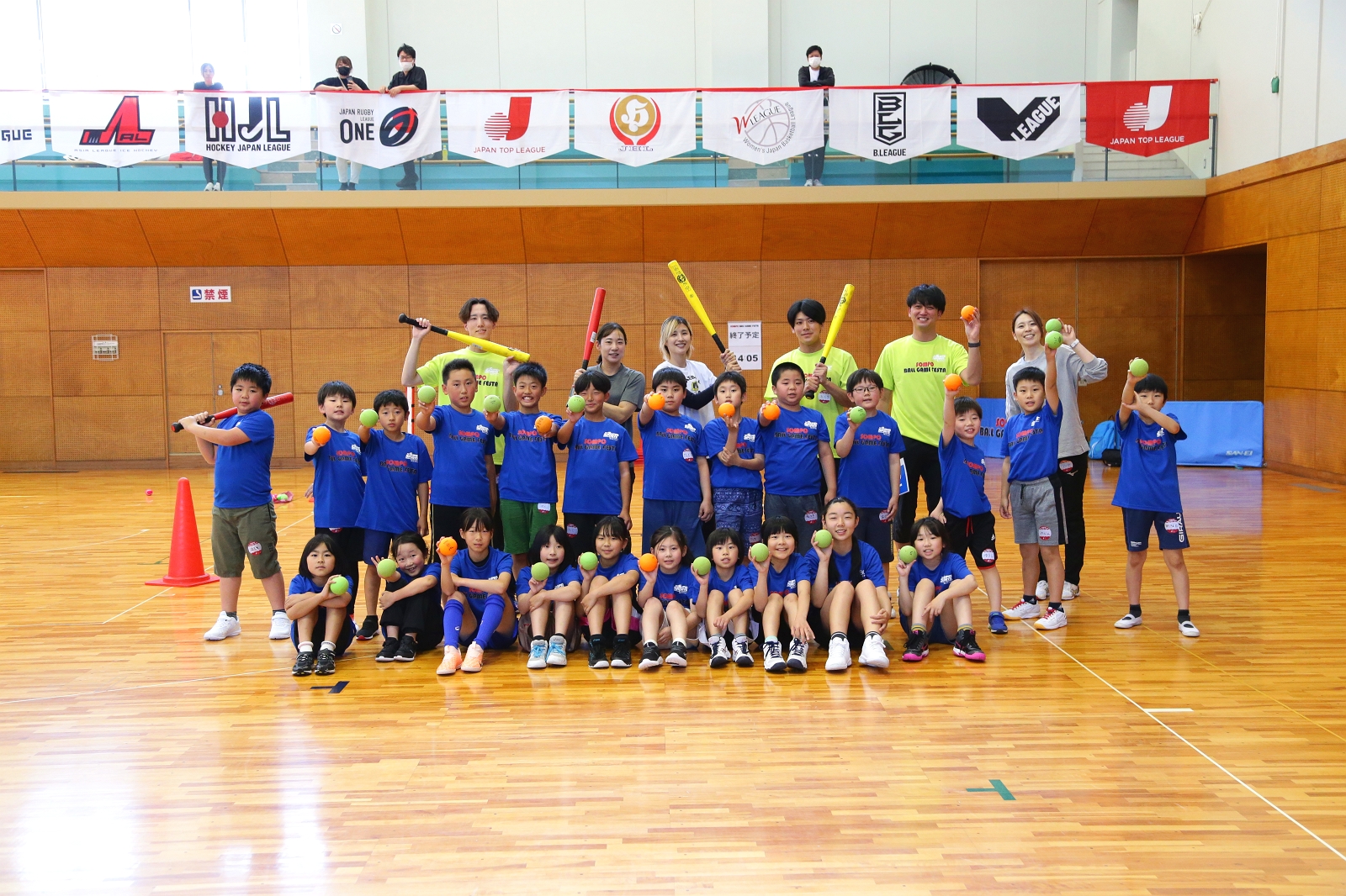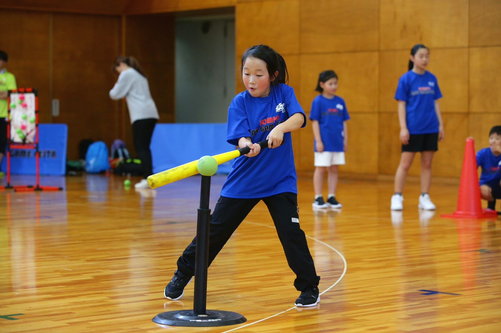 スペシャルゲストとして元女子プロ野球選手の加藤優さんが参加され、遊びを通して運動の基礎を作るプログラムと4競技を体験しました。