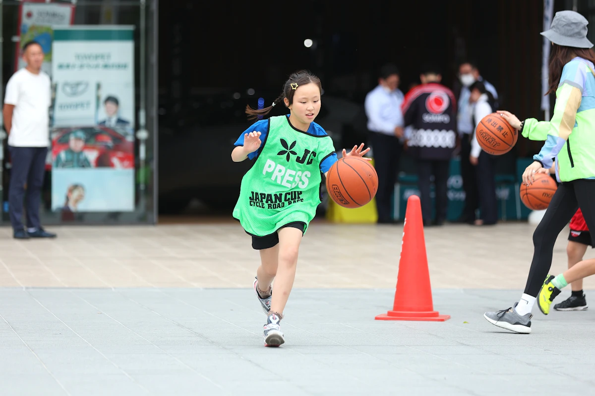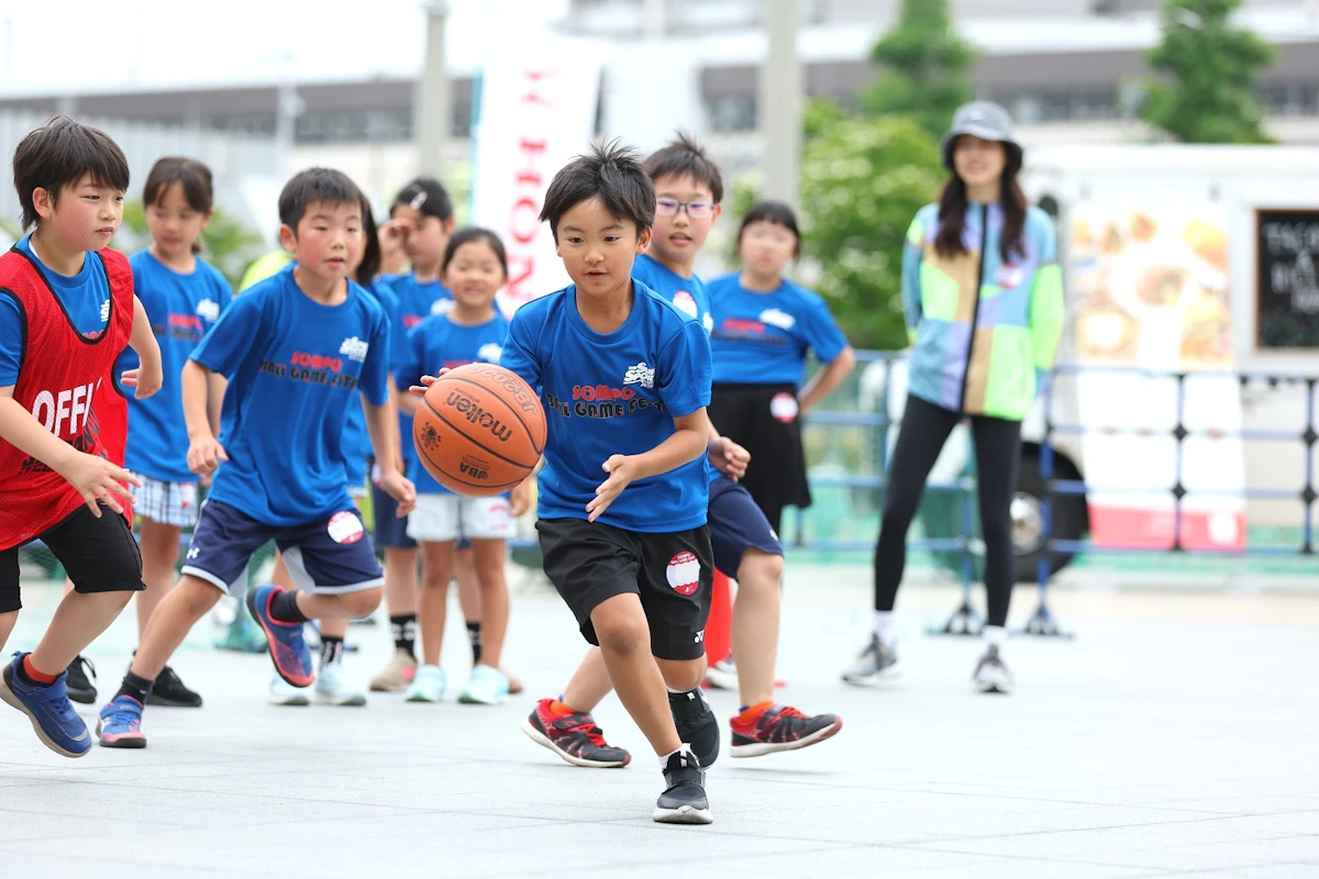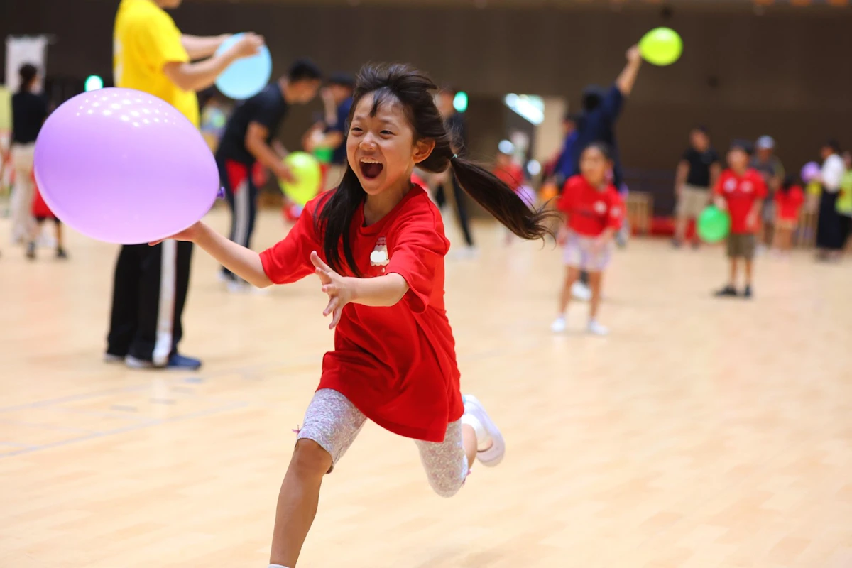 午前の「あそビバ!」には34組の親子が参加し、運動遊びと、様々な形状・大きさのボールを使った遊びや風船や新聞を使った家庭でも取り入れることができる遊びを楽しんでいる姿が見られました。午後の「キッズチャレンジ」には52名の子どもたちが参加し、バスケットボール、サッカー、クリケットの3種目にチャレンジしました。