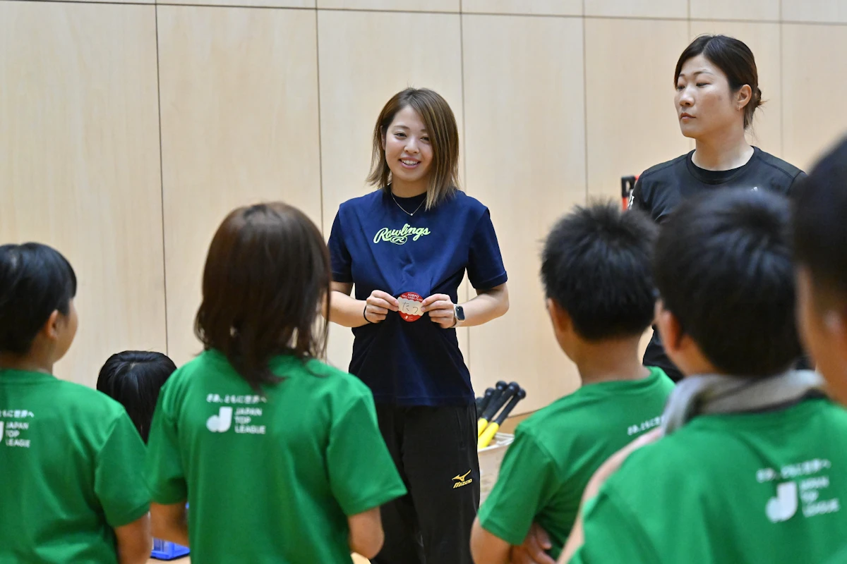 午後のラグビーではマットに向かってトライの体験をしたり、相手のタグを取った際のコールである「タグ!」という声が会場内にたくさん響き渡っていました!