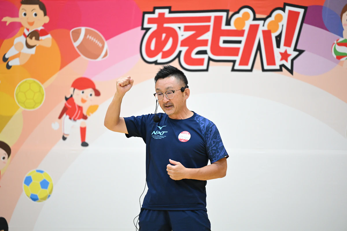 プログラム中は終始、子どもたちの元気な声が体育館中に響き渡っていましたが、特に「引っこ抜きゲーム」という子どもたちが全身の力を使ってお父さんやお母さんの足を持ち上げる”あそび”が大いに盛り上がっていました。