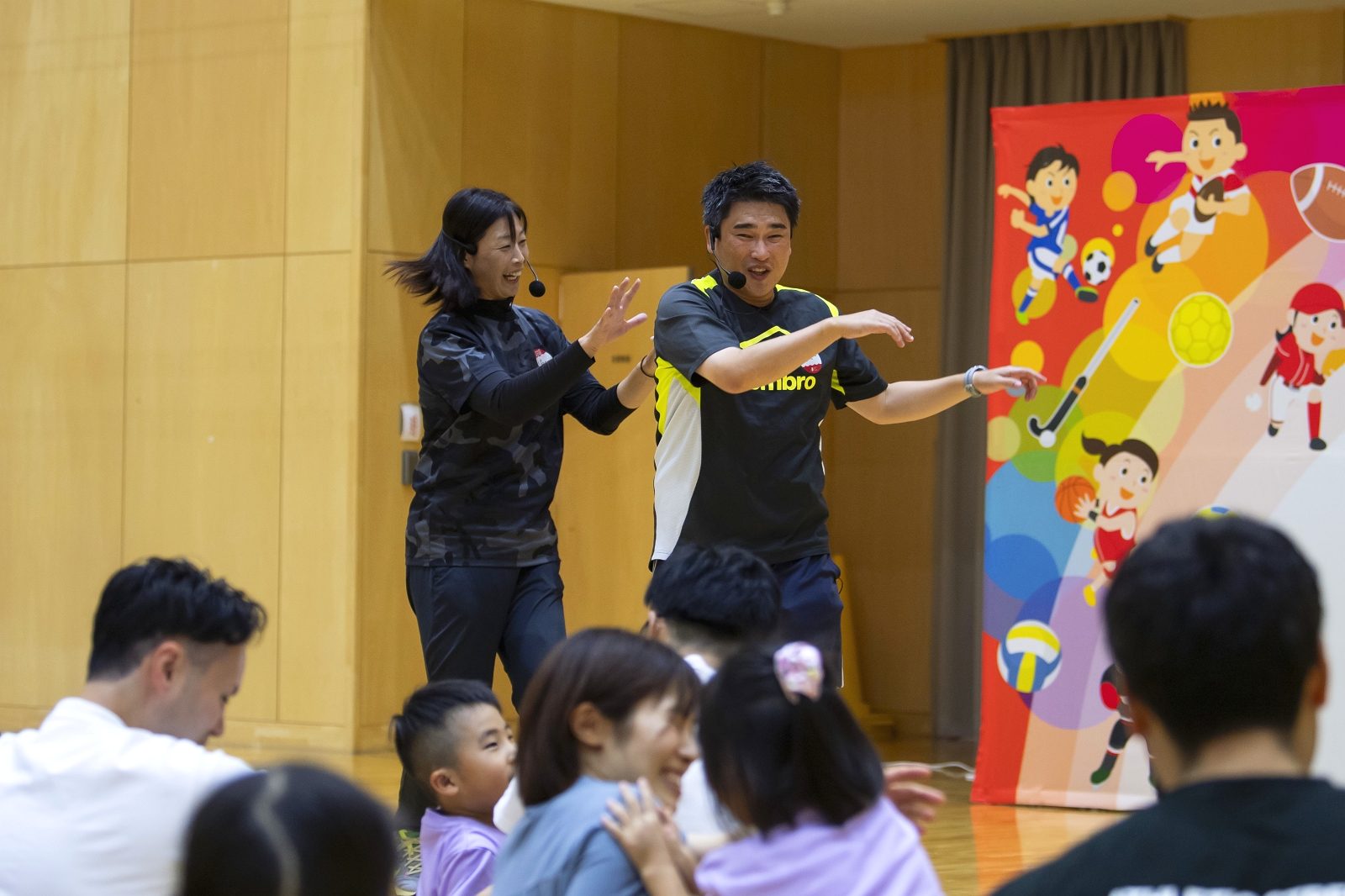 また、講師として参加いただいた元ソフトボール日本代表の坂井寛子さんが、参加されていたお父さんを相手にピッチングを披露され、坂井さんの現役さながらの投球に、会場は大きな歓声で包まれていました。