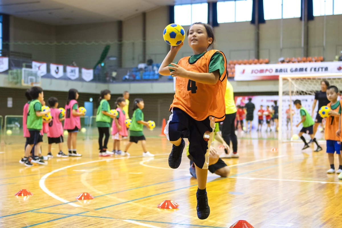 5回目の開催となった今年度の富士吉田開催当日はあいにくのお天気となりましたが、会場内にはプログラム開始前から元気いっぱい遊ぶ子どもたちで溢れていました。そしてキッズチャレンジの開講式では、講師から種目の紹介やデモンストレーションが披露されました。子どもたちは目を輝かせて見つめる中、ハンドボールのシュートが決まった瞬間は子どもたちだけでなく、会場全体にその日一番の歓声が巻き起こっていました。
