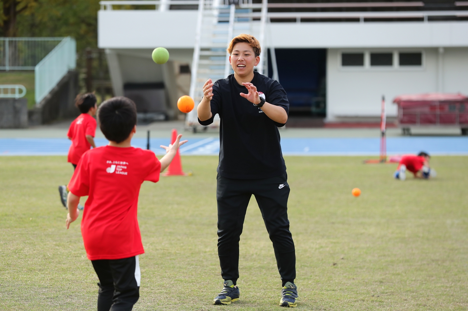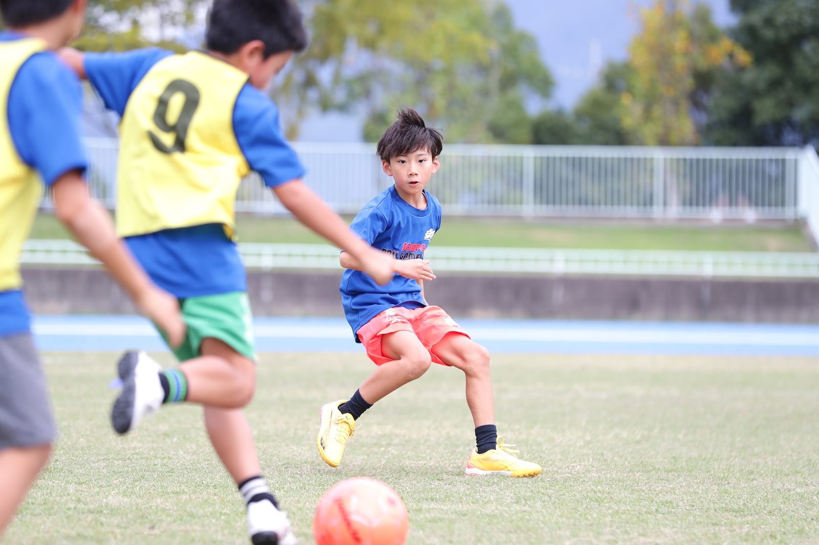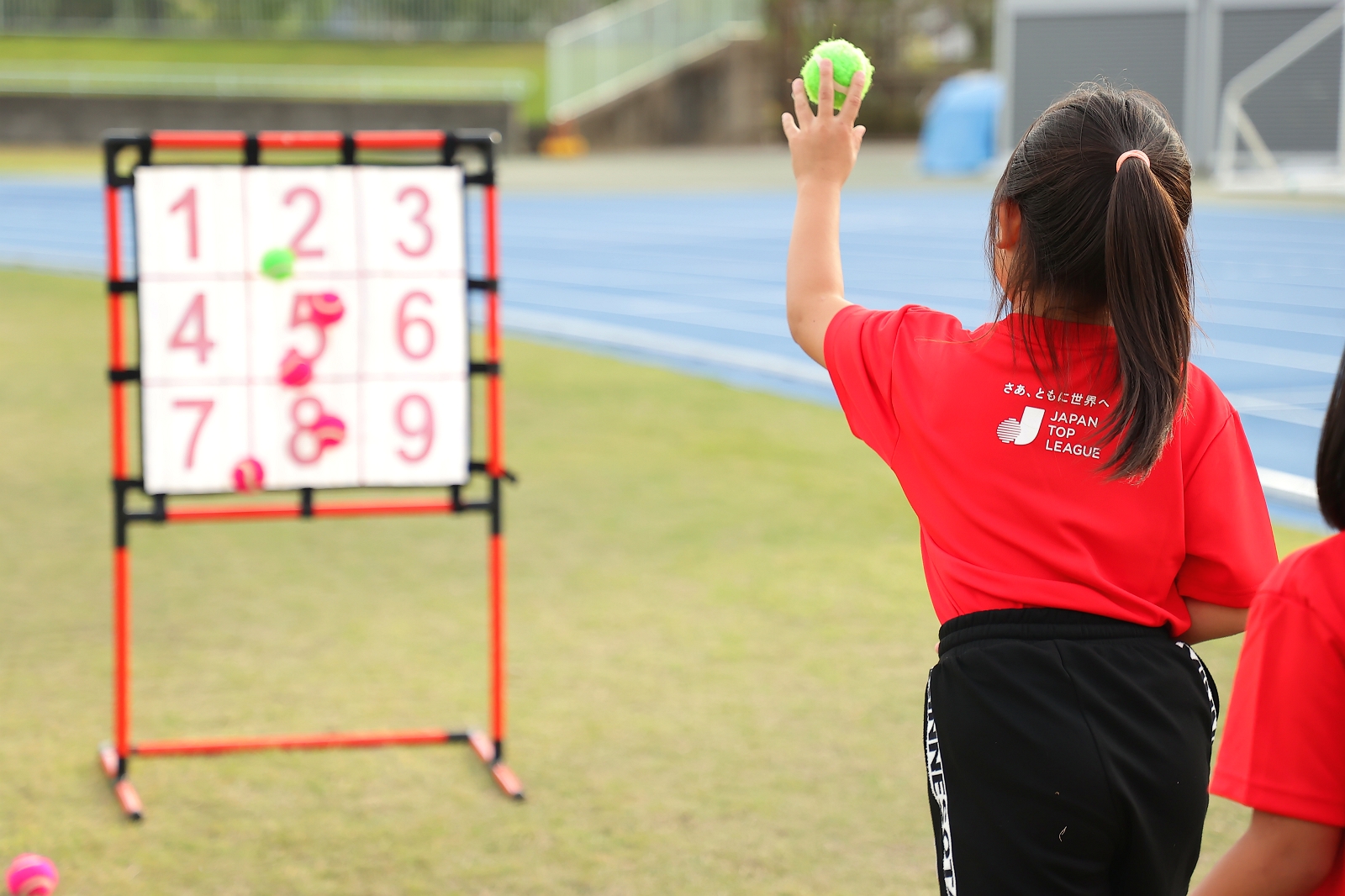 今回の亀岡市でのボールゲームフェスタは、午後のキッズチャレンジが屋外の陸上競技場だけでの開催予定で、直前までの雨天予報で中止も想定されましたが、当日は暑いぐらいの好天に恵まれ無事に開催することができました。