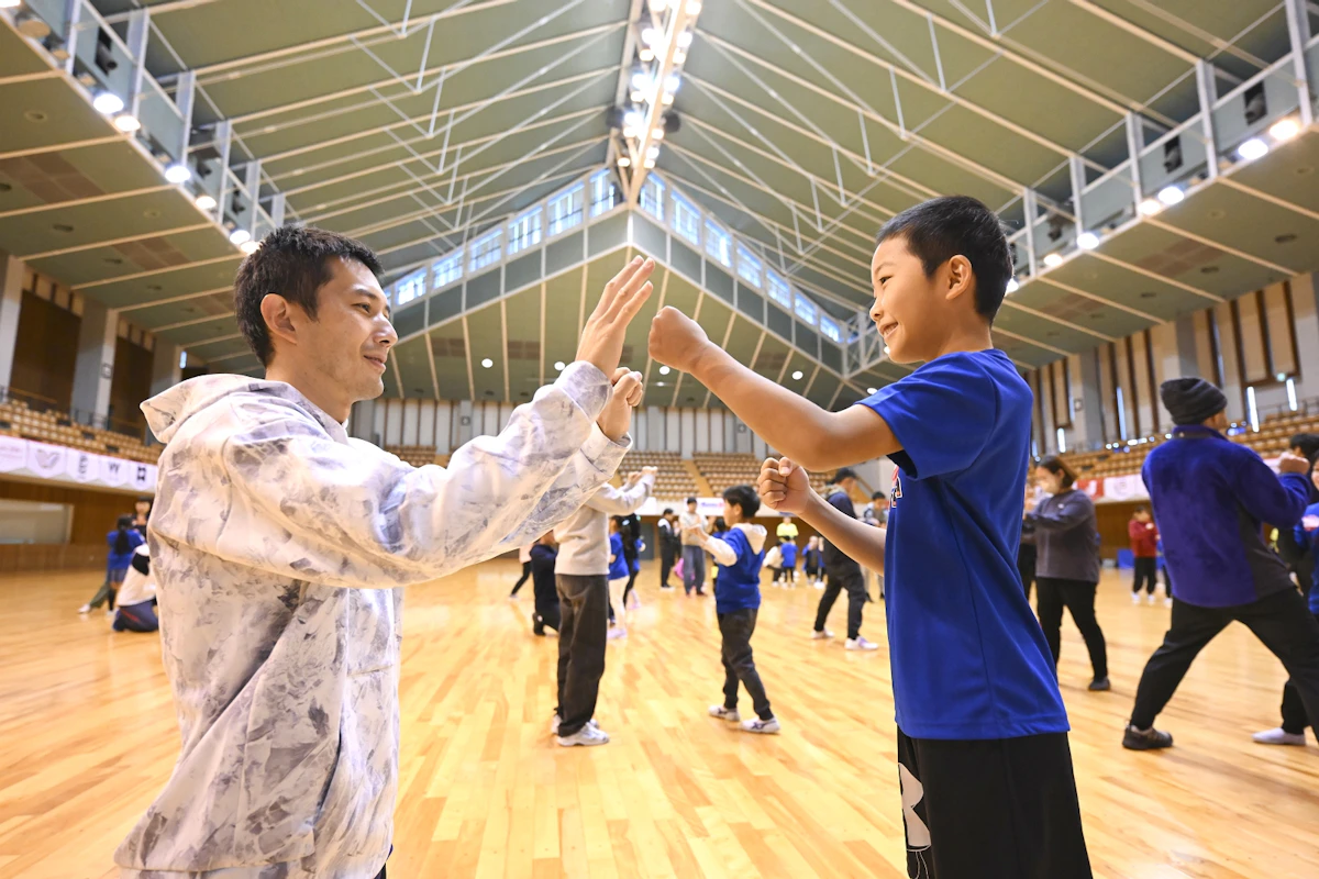また午後のキッズチャレンジでは、子どもたちは種目毎に分かれ、開始時と終了時に大きな声で「お願いします!」「ありがとうございました!」と、塚原さんのパワーに負けず劣らず元気に挨拶をしていました。子どもたちにとって、競技の楽しさだけではなく、礼に始まり礼に終わるという大切なことも共に感じ取れたひと時だったのではないでしょうか。