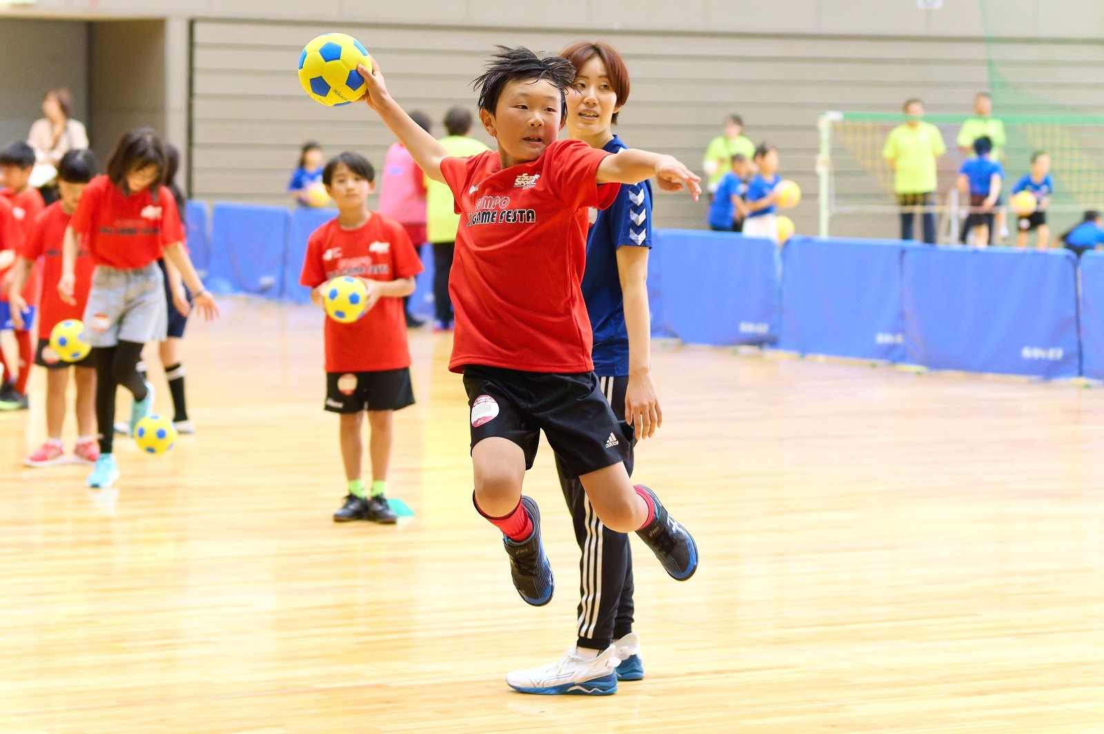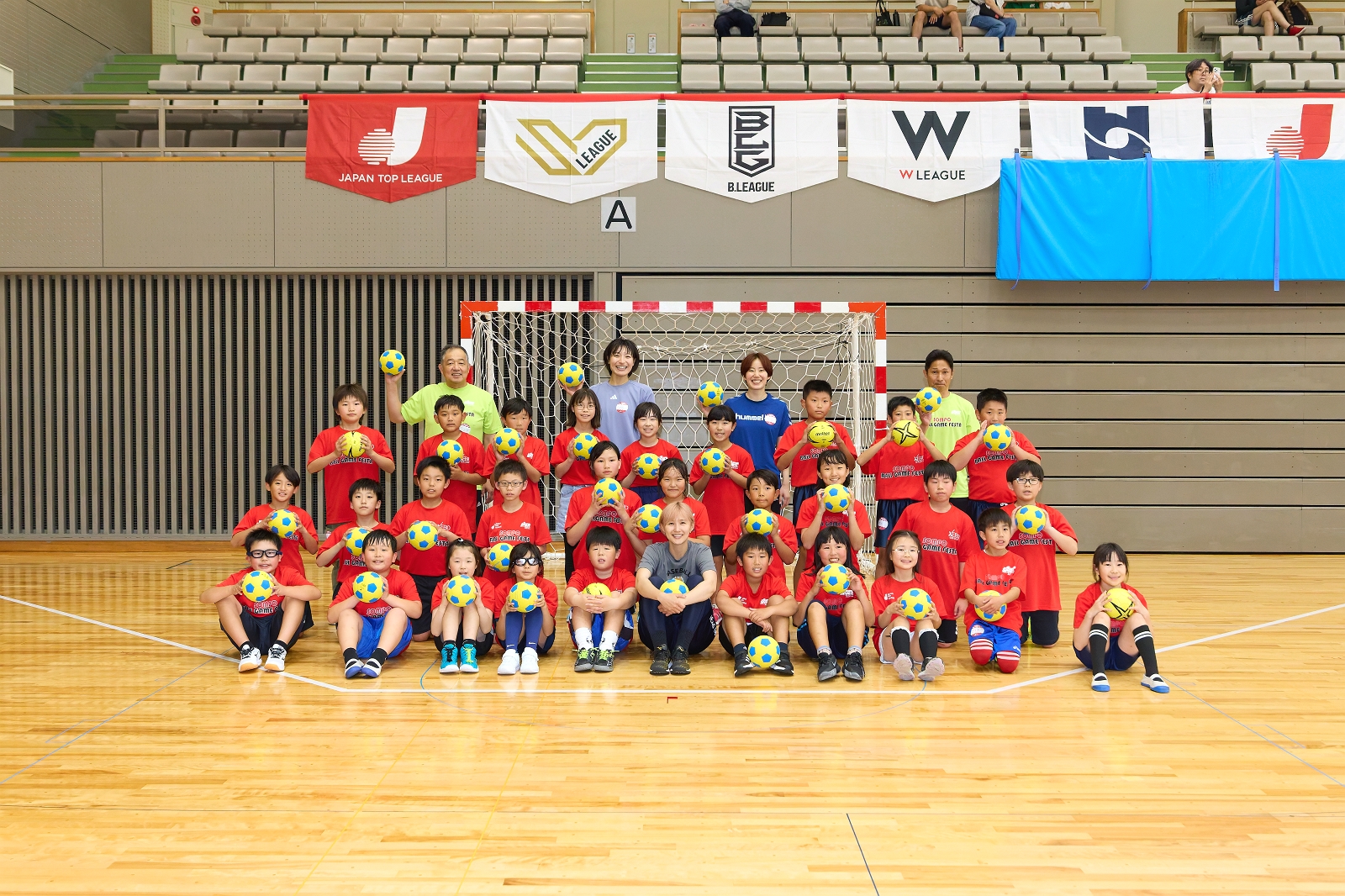 また、プロの選手も輩出しているほどハンドボールが盛んな岩国市、午後のキッズチャレンジでは、ハンドボールを含む4種のボールゲームに挑戦。参加した子どもたちは競技の楽しさに気づいた様子で、閉講式では、講師のサインが入った修了証を嬉しそうに受け取っている姿が印象的でした。