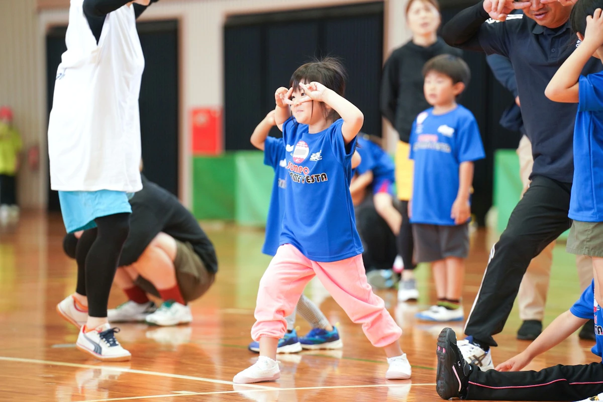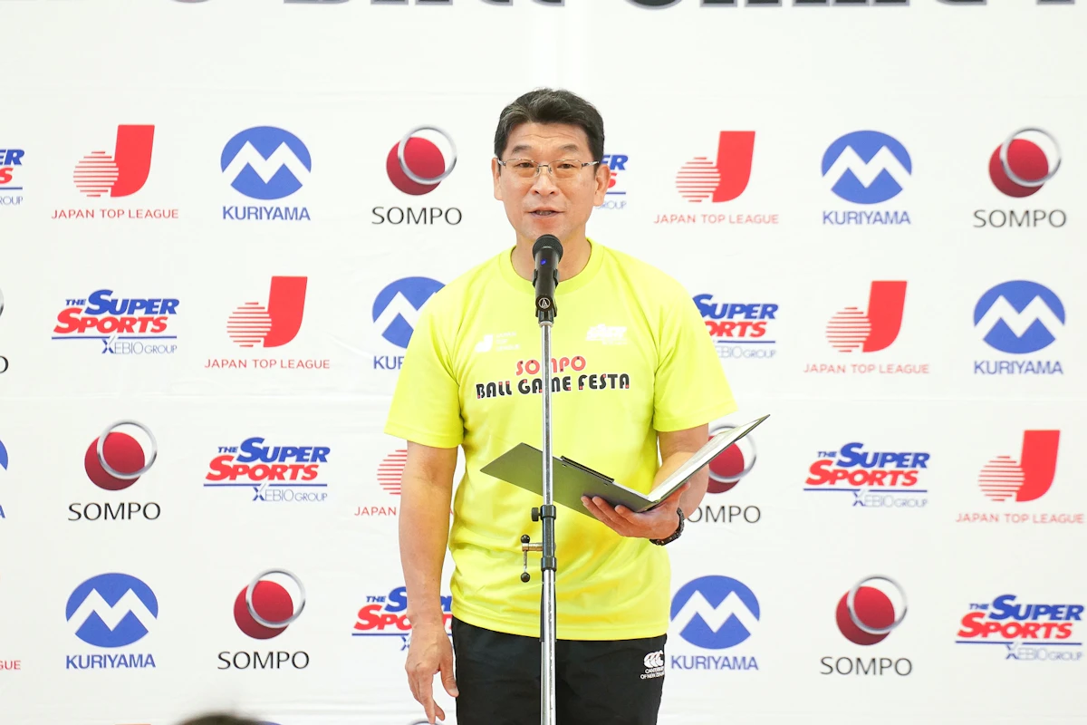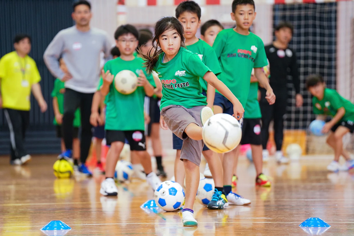 キッズチャレンジ開講式の講師チャレンジでは各競技のアタック・シュート、そしてスペシャルゲストの塚原氏によるダイナミックな走りが披露され、それを見た子どもたちの目は、体験する3つの競技に向けてやる気に満ち溢れていました。