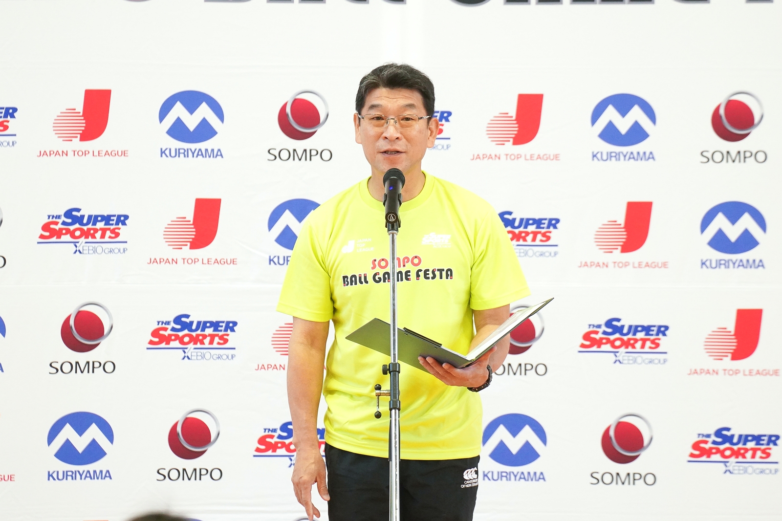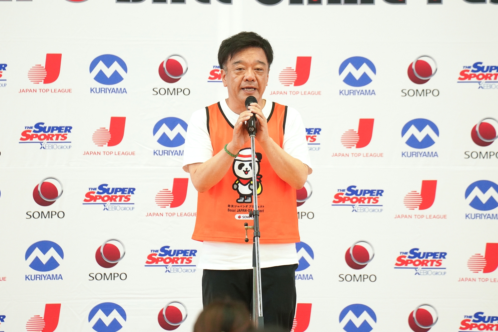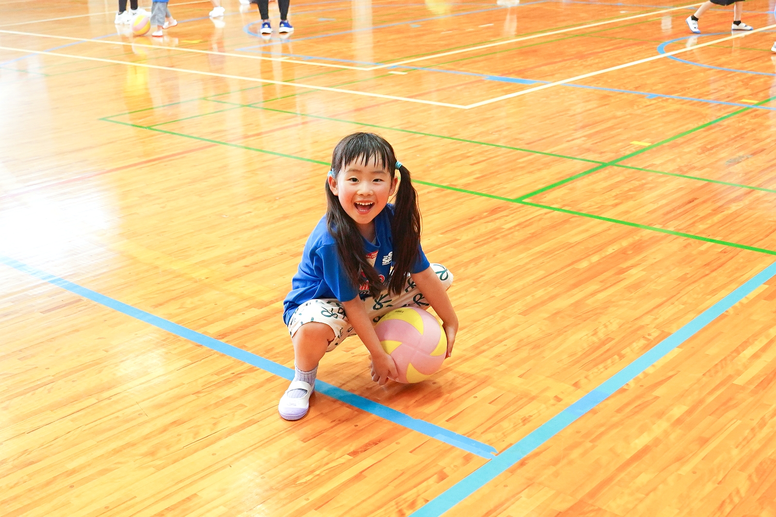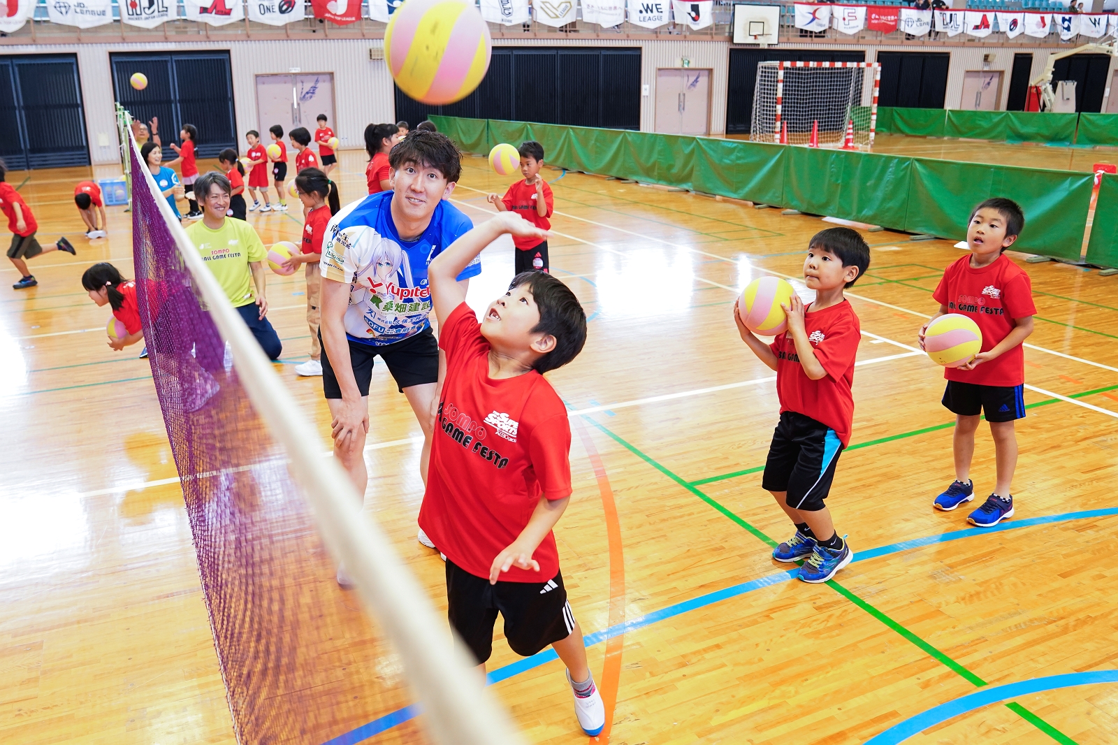 キッズチャレンジ開講式の講師チャレンジでは各競技のアタック・シュート、そしてスペシャルゲストの塚原氏によるダイナミックな走りが披露され、それを見た子どもたちの目は、体験する3つの競技に向けてやる気に満ち溢れていました。