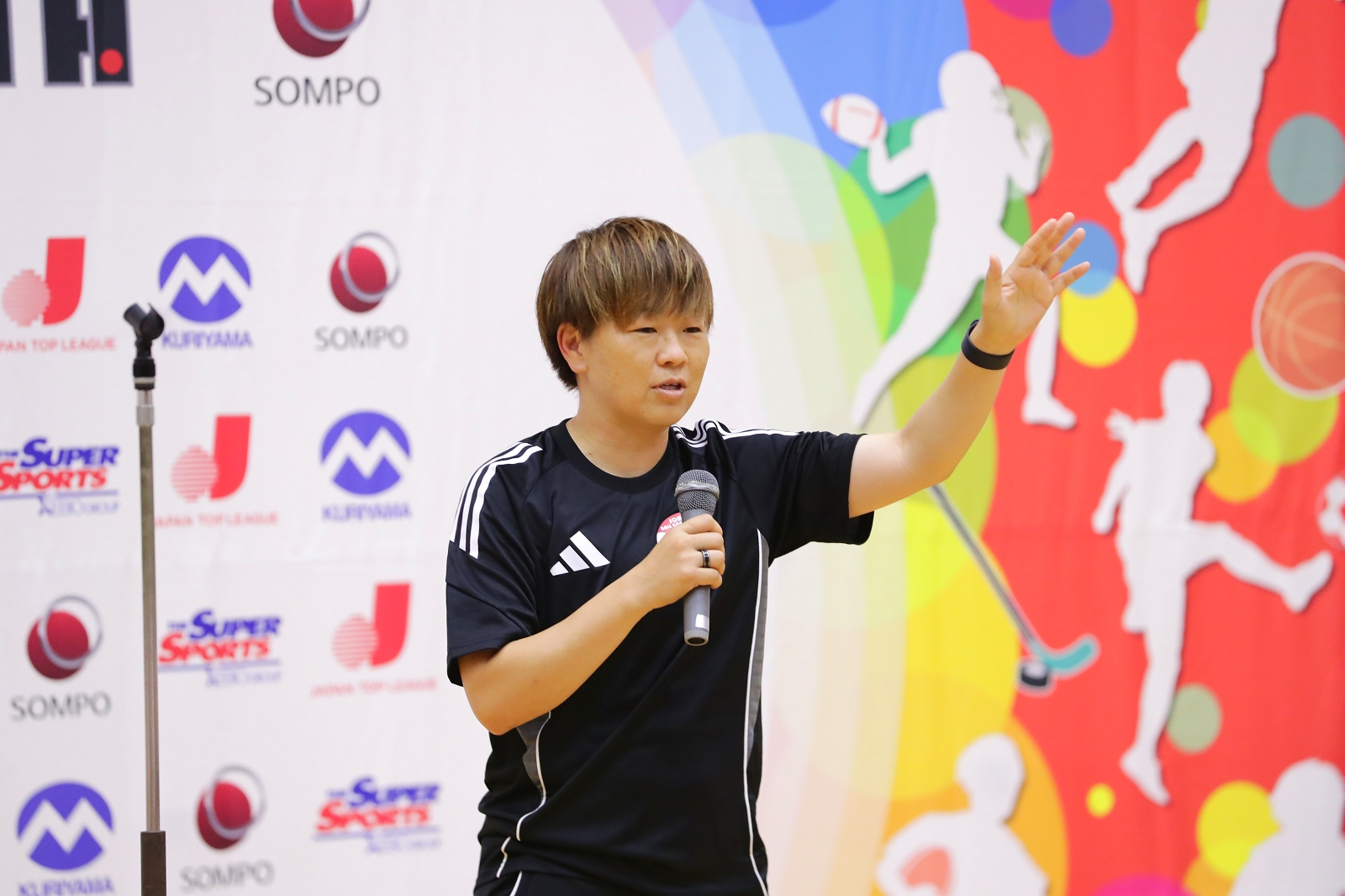 今回アンバサダーとして初参加となった、元なでしこジャパンの宮間あやさんは、会場では「ヤーちゃん」の愛称で親しまれ、終始笑顔で参加者と一緒にプログラムに参加いただきました。