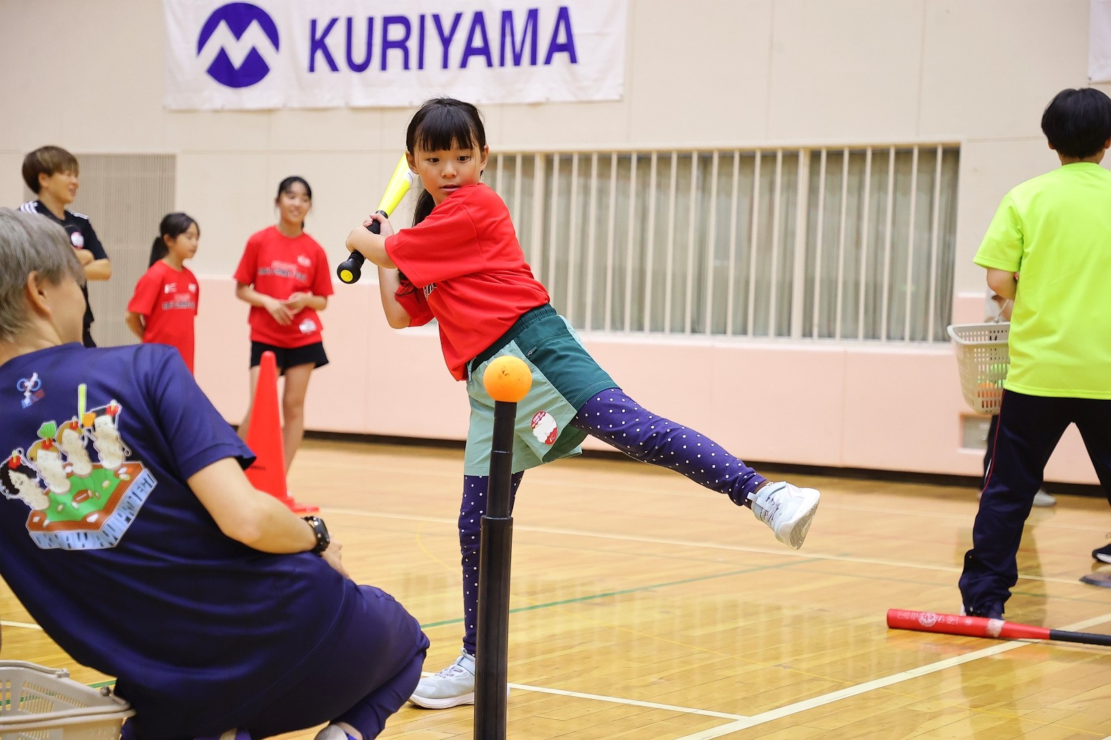 キッズチャレンジでは、ソフトボールの競技中、講師の投げたボールがスタンド席を超えて最後部の壁まで届く様子に、子どもたちは大興奮!笑顔が絶えない、にぎやかな1日となりました。