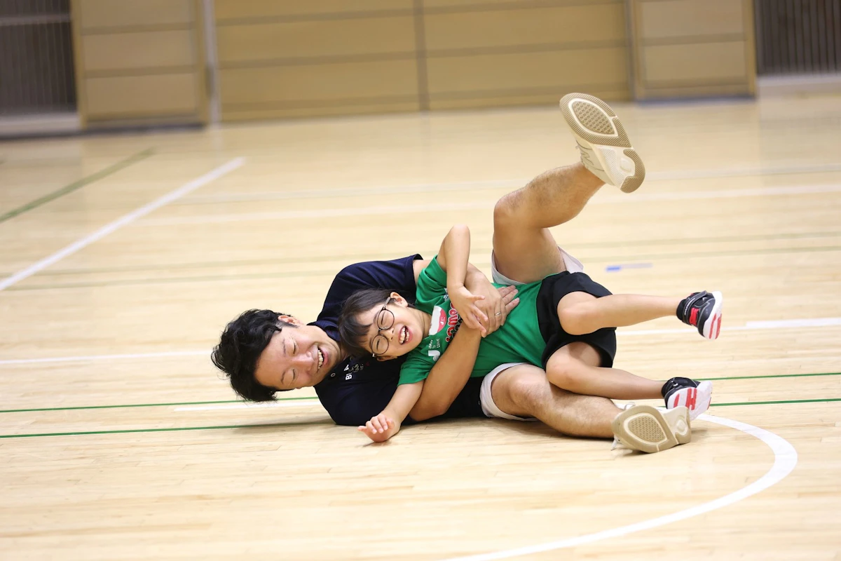 あそビバ!では、保護者のホールドから脱出するあそび「脱出大作戦」が大盛り上がり!ハグで触れ合いながらも、どんどんレベルアップする脱出の難易度に、親子の笑顔が溢れていました。
