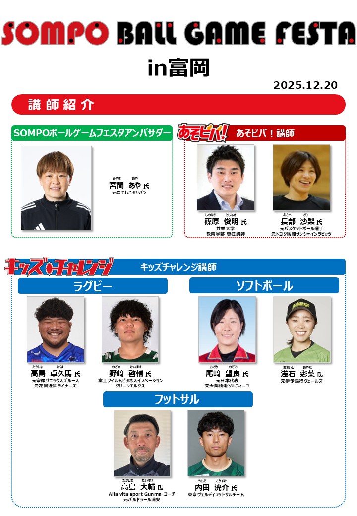 12月20日(土)群馬県富岡市にて「SOMPO ボールゲームフェスタ in 富岡」を開催いたしました!