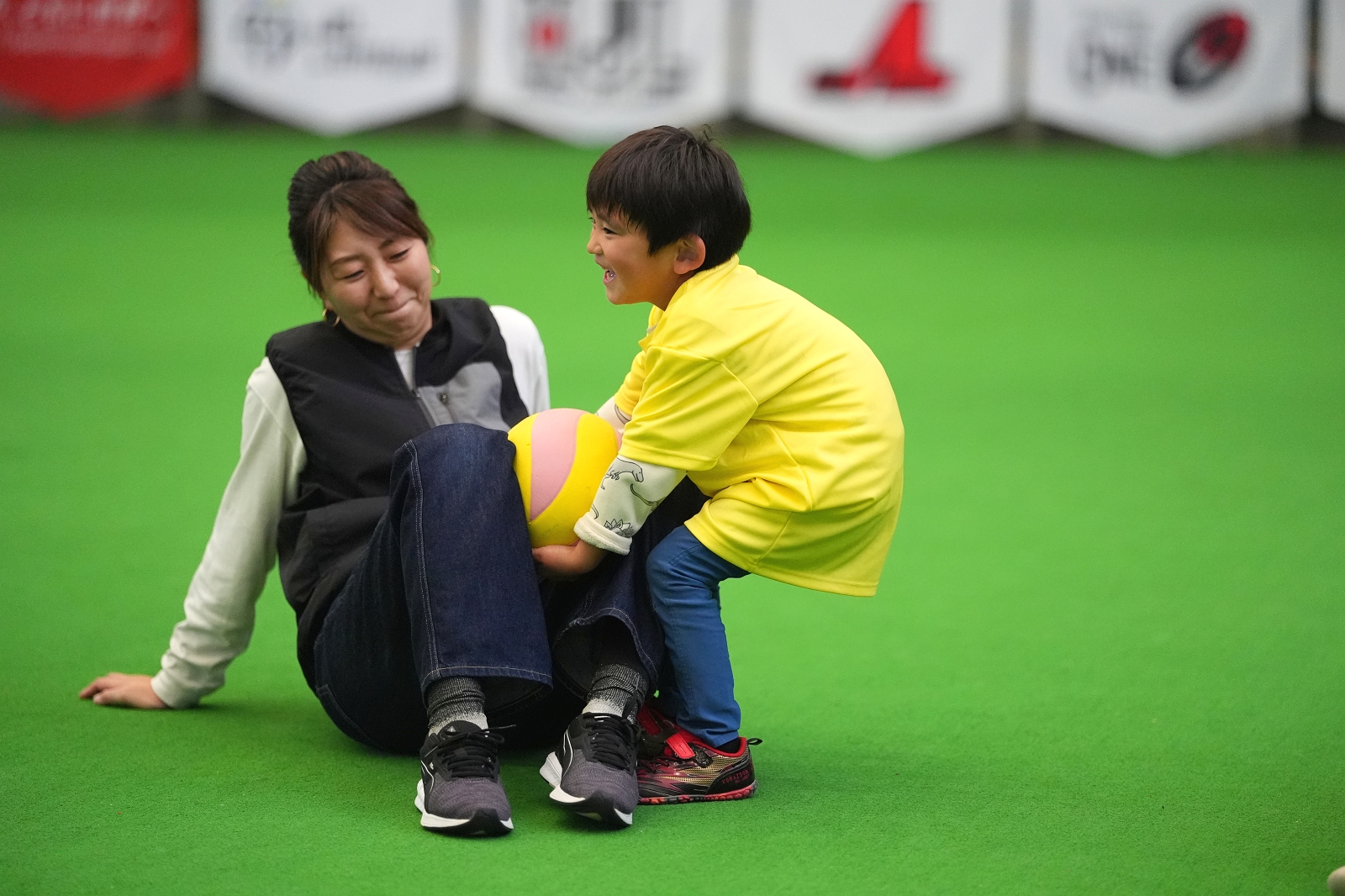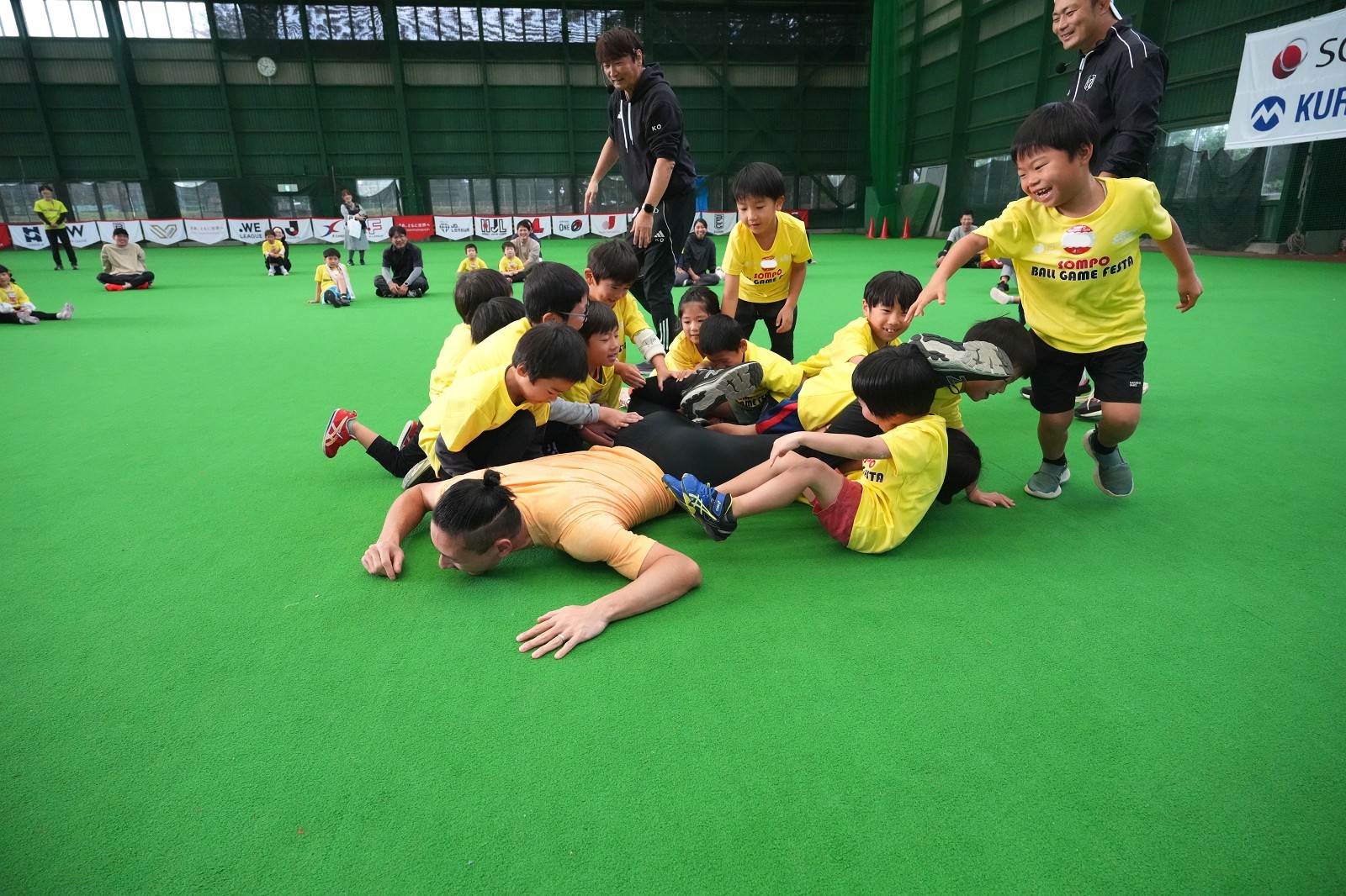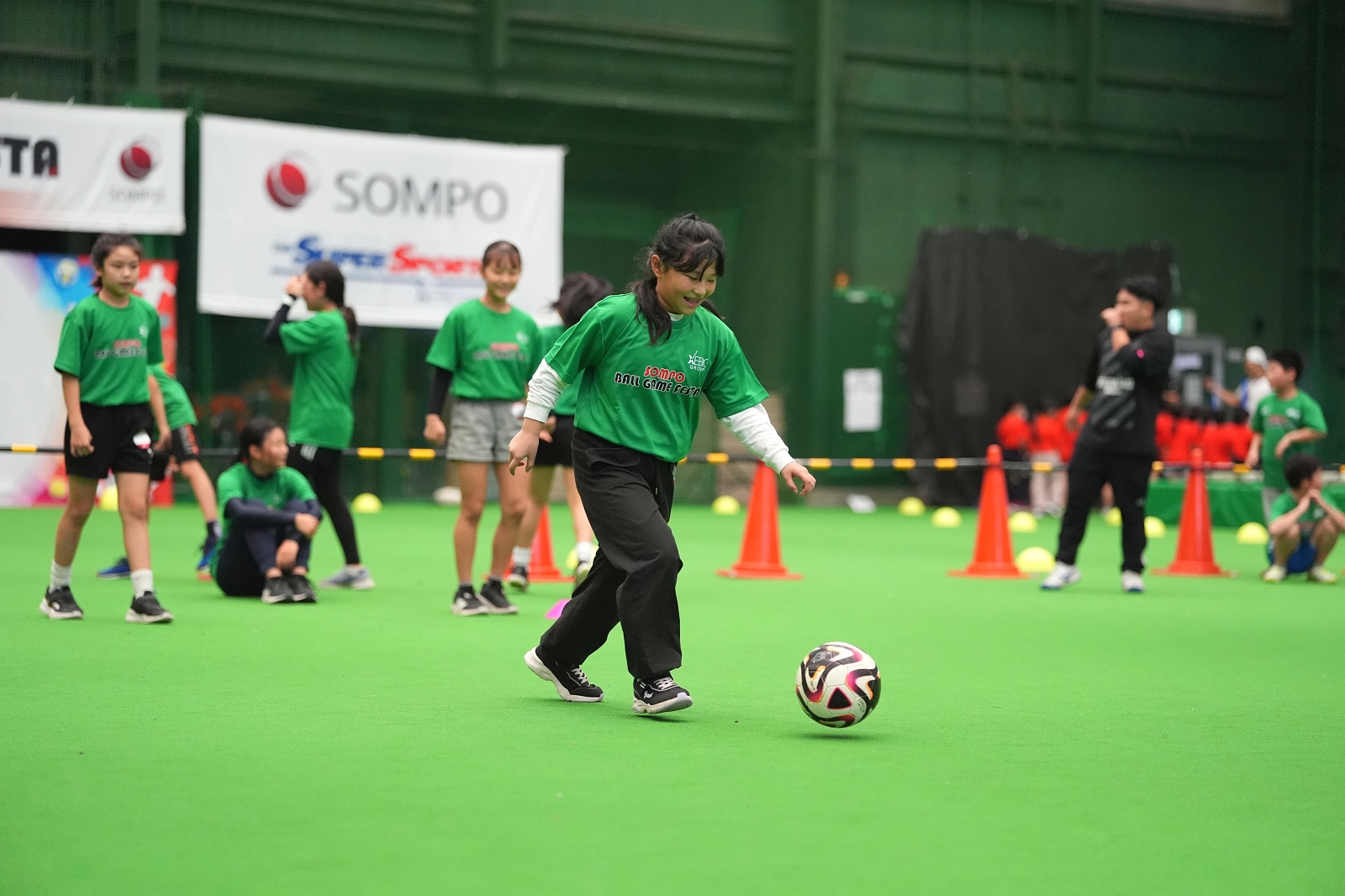 イベント1週間前に地元の「テゲバジャーロ宮崎」が初のJ2昇格を決めたことも影響があり、プログラム開始前からサッカーボールの近くには子どもたちが大集合!