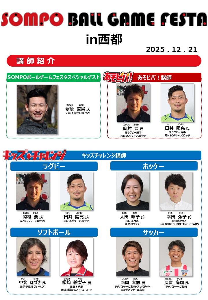 12月21日(日)宮崎県西都市にて「SOMPO ボールゲームフェスタ in 西都」を開催いたしました!