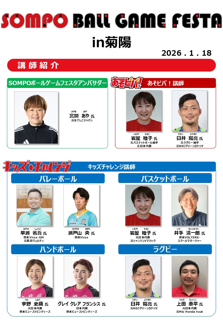 1月18日(日)熊本県菊池郡菊陽町にて「SOMPO ボールゲームフェスタ in 菊陽」を開催いたしました!