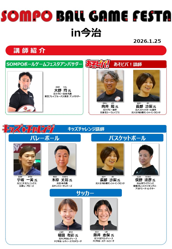 1月25日(日)愛媛県今治市にて「SOMPO ボールゲームフェスタ in 今治」を開催いたしました!