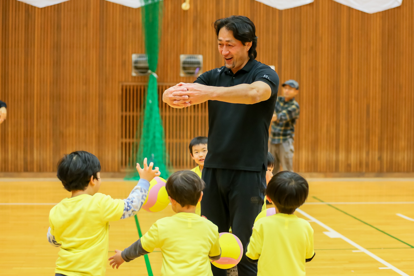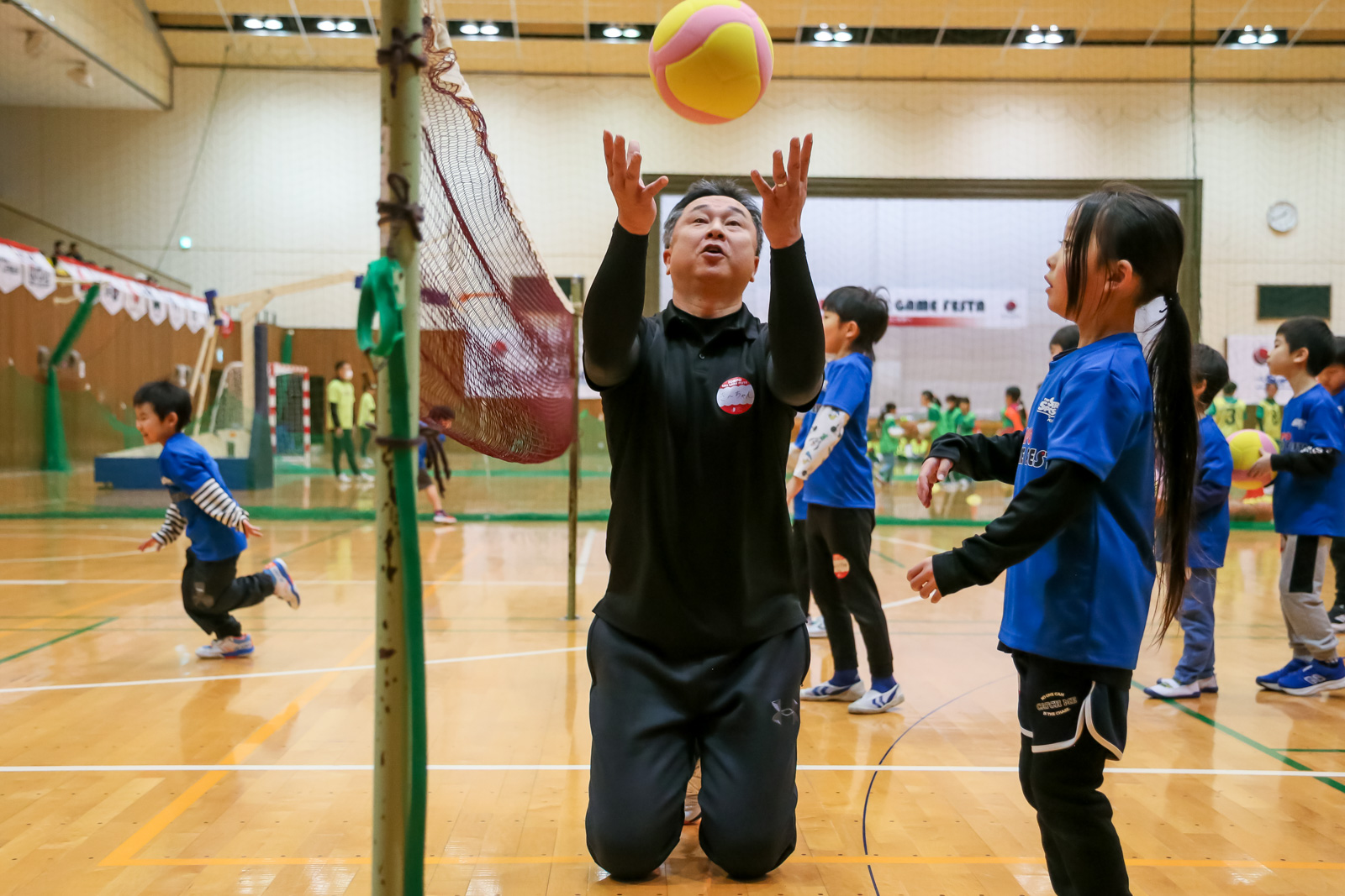 午後のキッズチャレンジでは、3種目にチャレンジ!バレーボールでは、最初はスパイクがネットに引っかかってしまった子も、講師のアドバイスでできるようになると、満面の笑顔を見せてくれました!