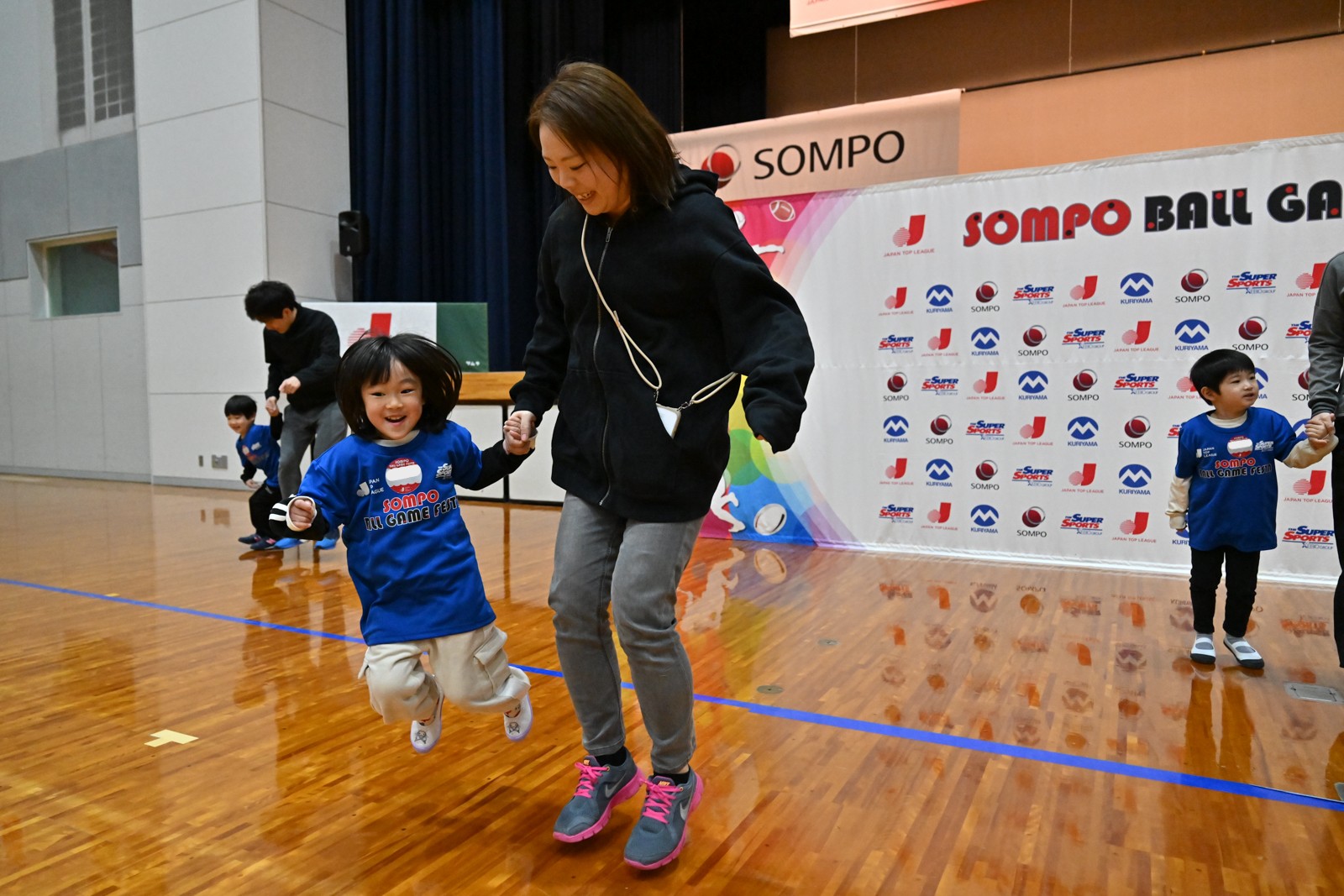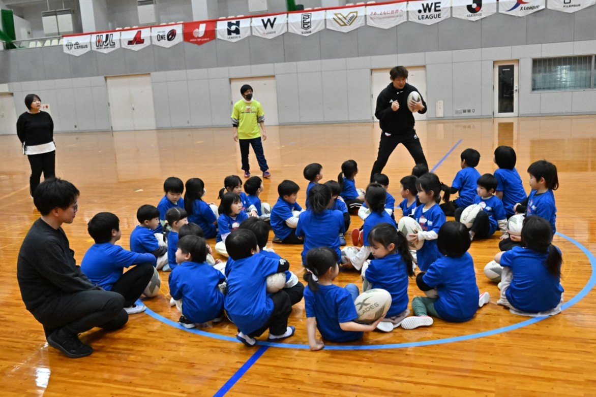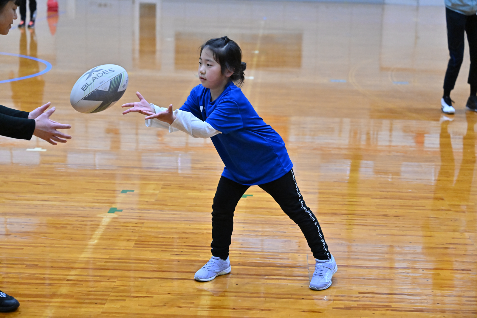 初めてラグビーボールに触る親子も多く、予測不能な転がり方をするラグビーボールに四苦八苦しながらも、みんな笑顔で楽しみながら取り組んでいました!