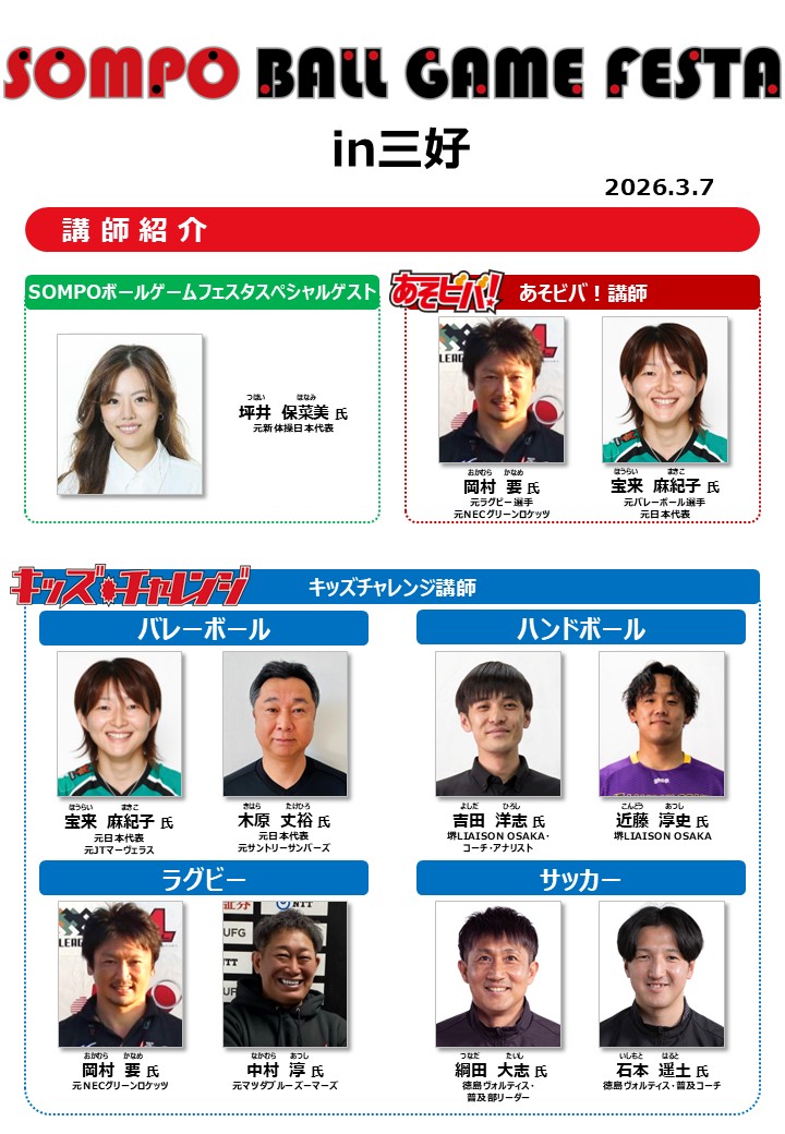 種 目 バレーボール、ハンドボール、ラグビー、サッカー