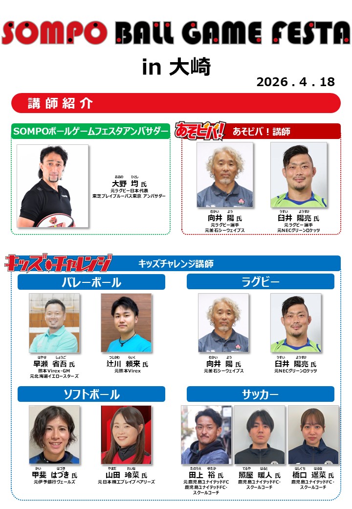 4月18日(土)鹿児島県曽於郡大崎町にて「SOMPO ボールゲームフェスタ in 大崎」を開催いたしました!