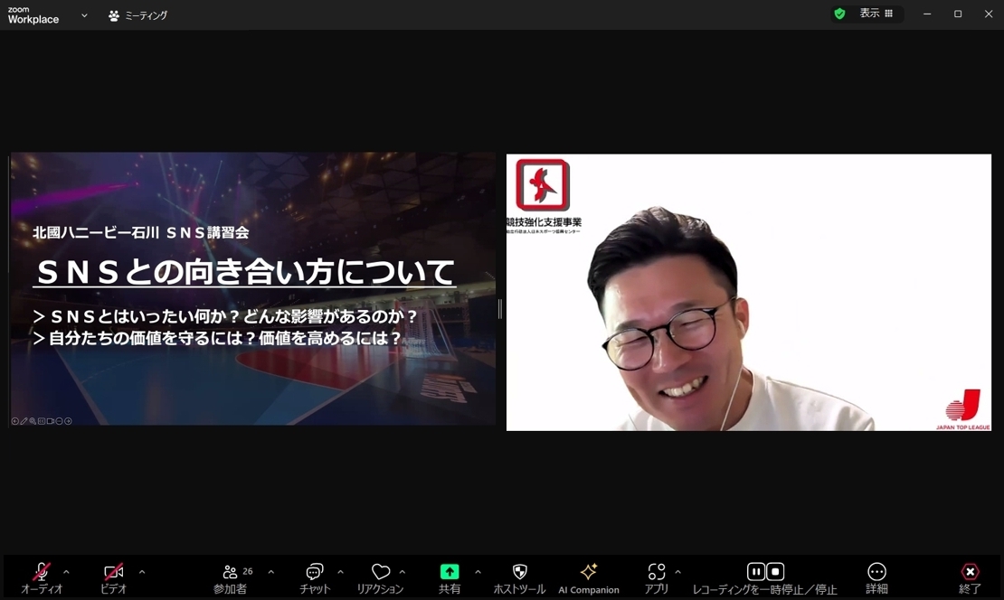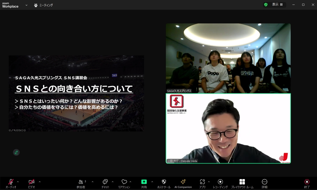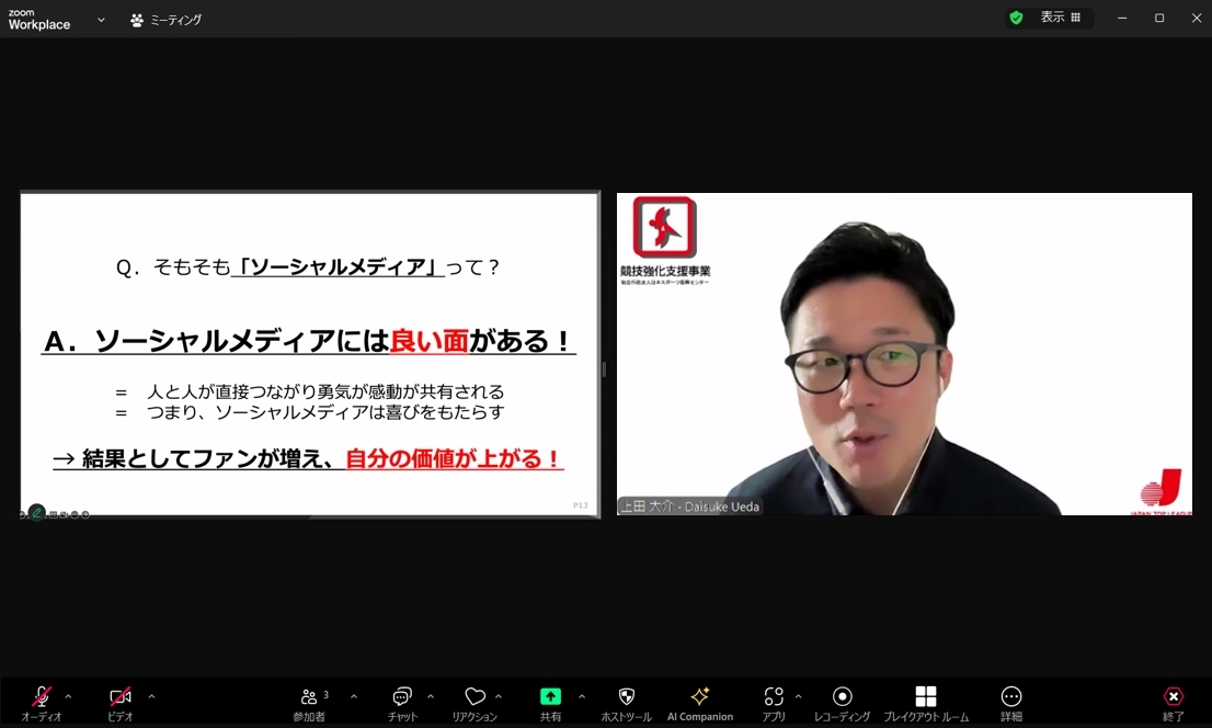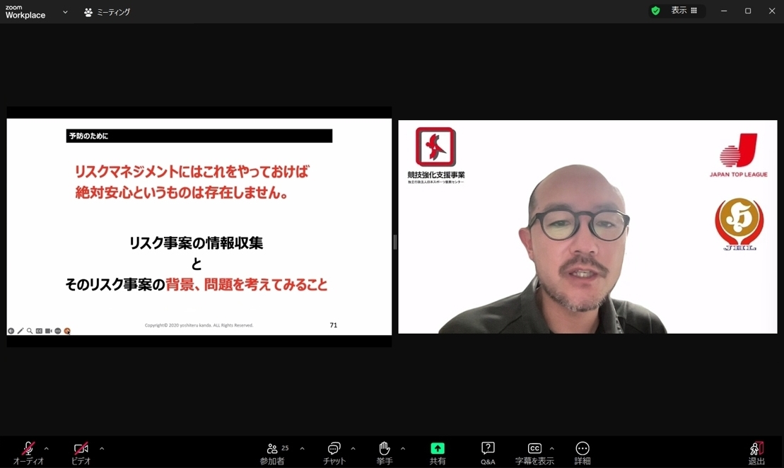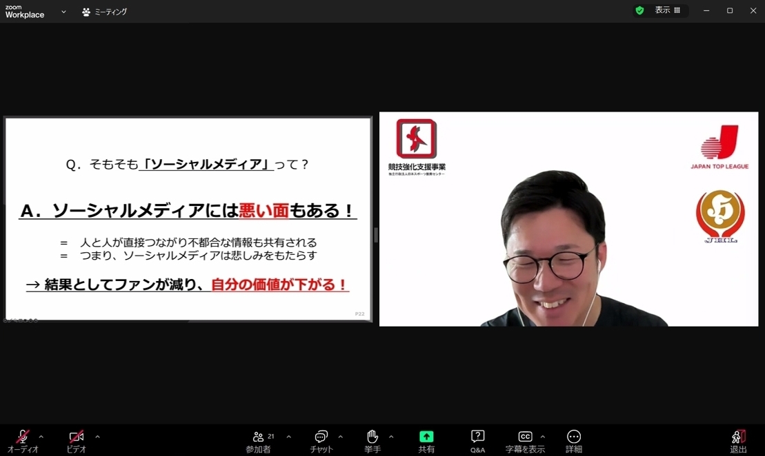 アスリートにとってのSNS、特有のトラブル事例、リスク対策法など、アスリートに気づいて欲しいことや求められていることを理解し、リスク管理の観点からSNSの守りを固める学びの場となりました。