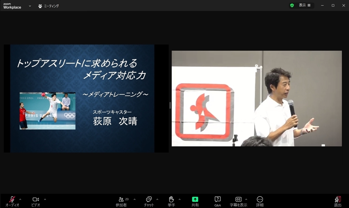 トップアスリートに求められるメディア対応力として、アスリートが発する言葉がどのようにメディアを通じて、受け手に届くのかをポイントに、心構えやテクニックなどを学びました。