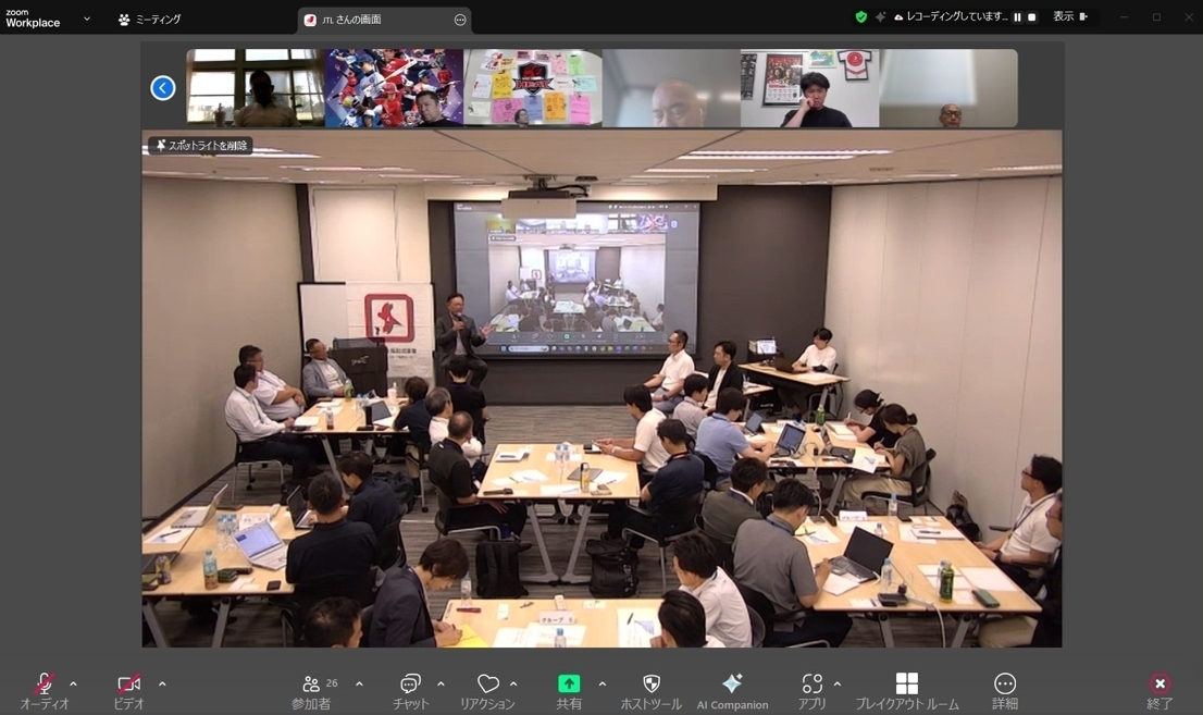 グループワークでは、澤井氏の講義を踏まえ、「企業スポーツはどのような価値を生み出しているか」について各グループで議論し、共有をしました。