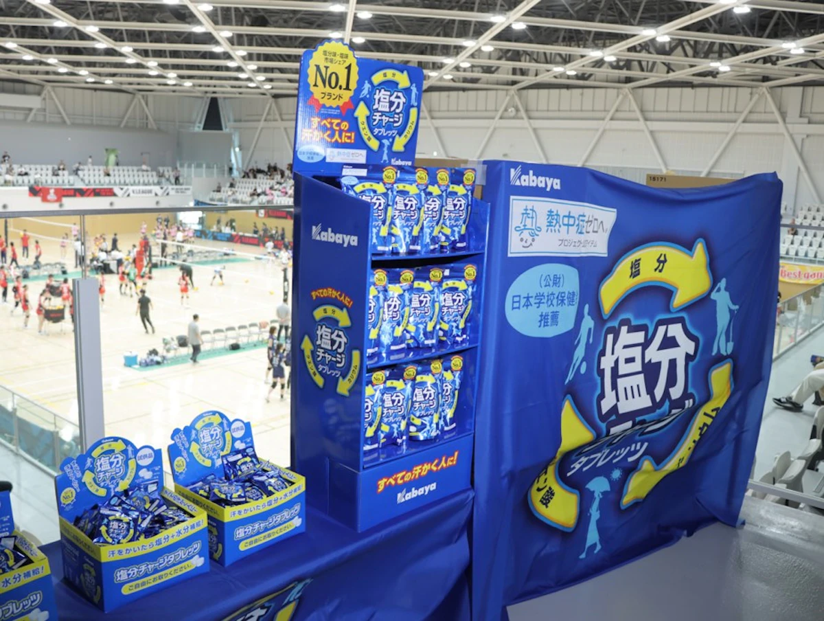 本施策の初回実施会場となった「2024 V・サマーリーグ西部大会」では、塩分補給の重要性を訴求するキャッチコピーが記載された看板の掲出と、「フレッシュスター賞予想企画」としてSNSタイアップキャンペーンを実施し、当選者の方へ副賞として「塩分チャージタブレッツ」の提供を行いました。(大会レポートは こちら )